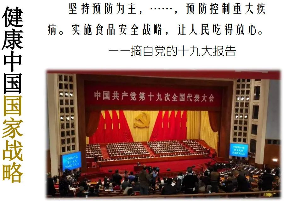 黨的十九大報告提出“堅持預(yù)防為主,……,預(yù)防控制重大疾病。實施食品安全戰(zhàn)略,讓人民吃得放心?!?br style="margin:0px;padding:0px;max-width:100%;box-sizing:border-box !important;word-wrap:break-word !important;overflow-wrap:break-word !important;" />