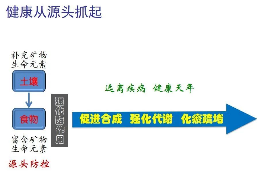中國科學(xué)院:徐恒泳!多年來,從跨學(xué)科角度,研究人與自然和諧的關(guān)鍵要素,揭示疾病的根源和本質(zhì),創(chuàng)造性提出非醫(yī)健康體系,通過控制危險因素,預(yù)防重大疾病,讓人遠(yuǎn)離疾病,健康長壽徐恒泳表示:導(dǎo)致現(xiàn)代疾病猖獗的原因是土壤中礦物生命元素的流失。正是由于土壤中營養(yǎng)元素的缺乏,故作物生長無法獲得或只能獲取少量對人體必需的營養(yǎng)元素,最終導(dǎo)致人體內(nèi)的合成障礙、代謝障礙、血管淤堵等問題,從而引發(fā)一系列的人類疾病。針對現(xiàn)階段存在的問題,徐老師提出,人類把控好生命的源頭,我們要補(bǔ)充土壤中的礦物生命元素,強(qiáng)化酶作用,促進(jìn)合成、強(qiáng)化代謝、化淤疏堵,從源頭抓起,解決困擾人類的健康問題。