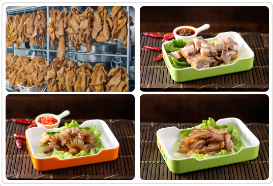 熟食生產(chǎn)線熟食生產(chǎn)線主要對(duì)牛筋、牛肚、牛鞭、牛尾等產(chǎn)品進(jìn)行加工,為客戶量身打造標(biāo)準(zhǔn)半成品,產(chǎn)品豐富。深手信熟食選取上等原料,確保產(chǎn)品質(zhì)量,并清洗整理成所需形狀,如:去筋膜、脂肪、油污、分割成合適塊形等,將處理后的熟食原料及時(shí)鹵制,配料嚴(yán)格按潮汕傳統(tǒng)工藝執(zhí)行,鹵制時(shí)間、制過(guò)程式中要按規(guī)定進(jìn)行翻動(dòng),保證其顏色、口感達(dá)到標(biāo)準(zhǔn)。