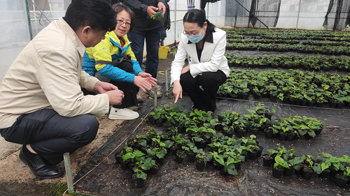 2022年3月,曾瑞玉同志在育苗基地調(diào)研羅漢果種苗生長(zhǎng)情況